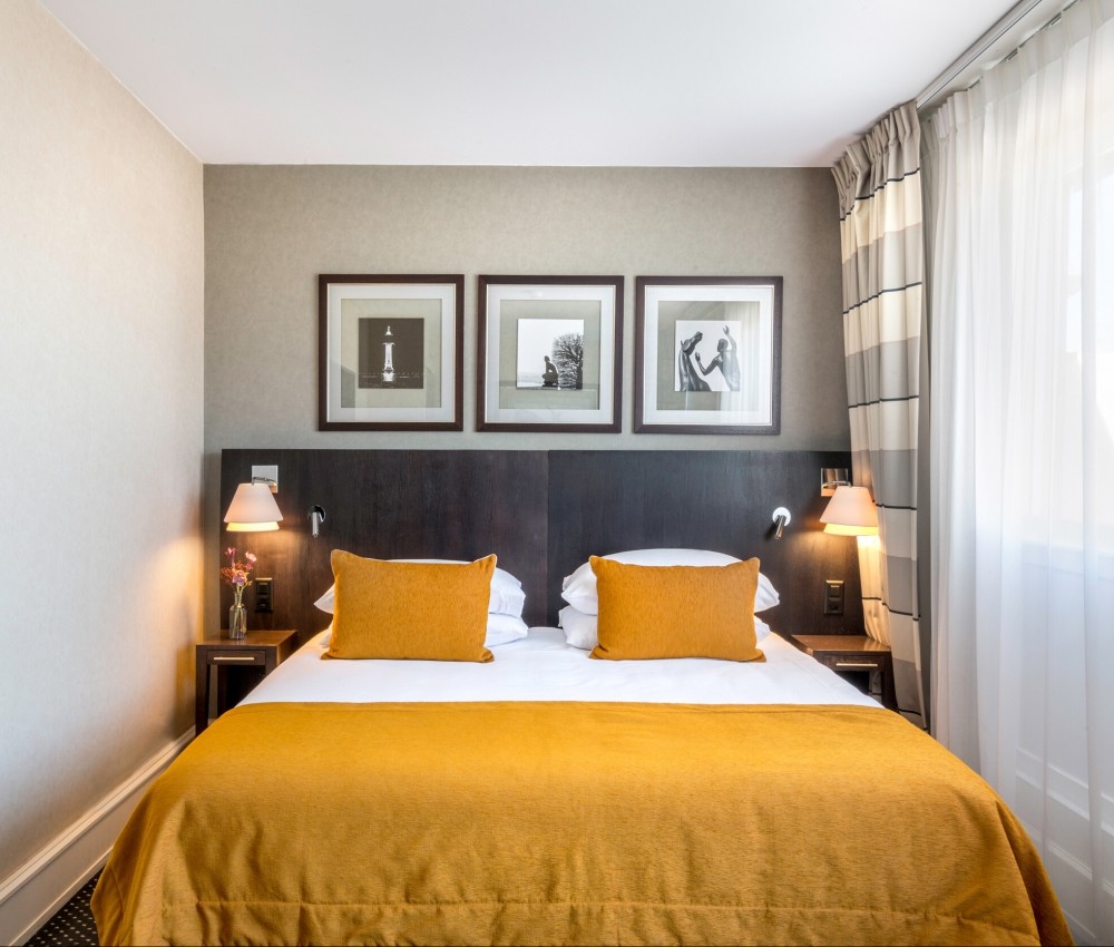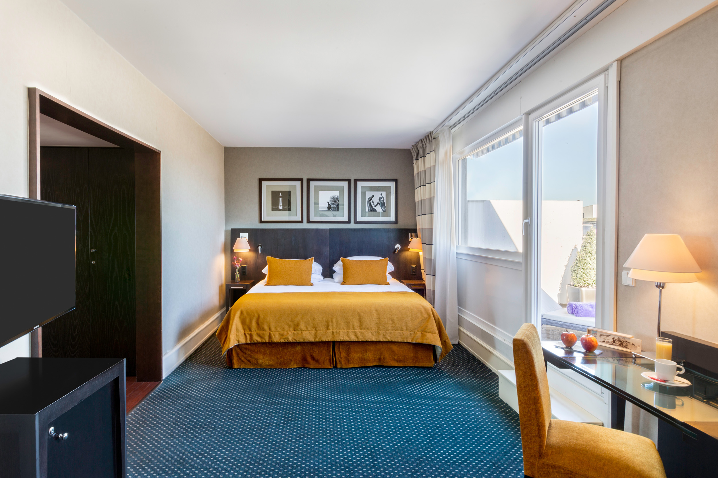 Dieses geräumige Zimmer von 23 m² bietet den Komfort und die Technologie, die für einen gelungenen Aufenthalt erforderlich sind. Sie werden die Dekoration schätzen, die Design und Geselligkeit vereint. In diesem Sinne öffnet sich der Wohnbereich zu einer schön eingerichteten Terrasse, einige mit Blick auf den See und den Mont Blanc. Erleben Sie die Nähe zu Genf in voller Privatsphäre.